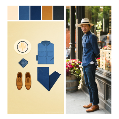 Color breakdown illustrations of outfit grids featuring menswear bloggers.